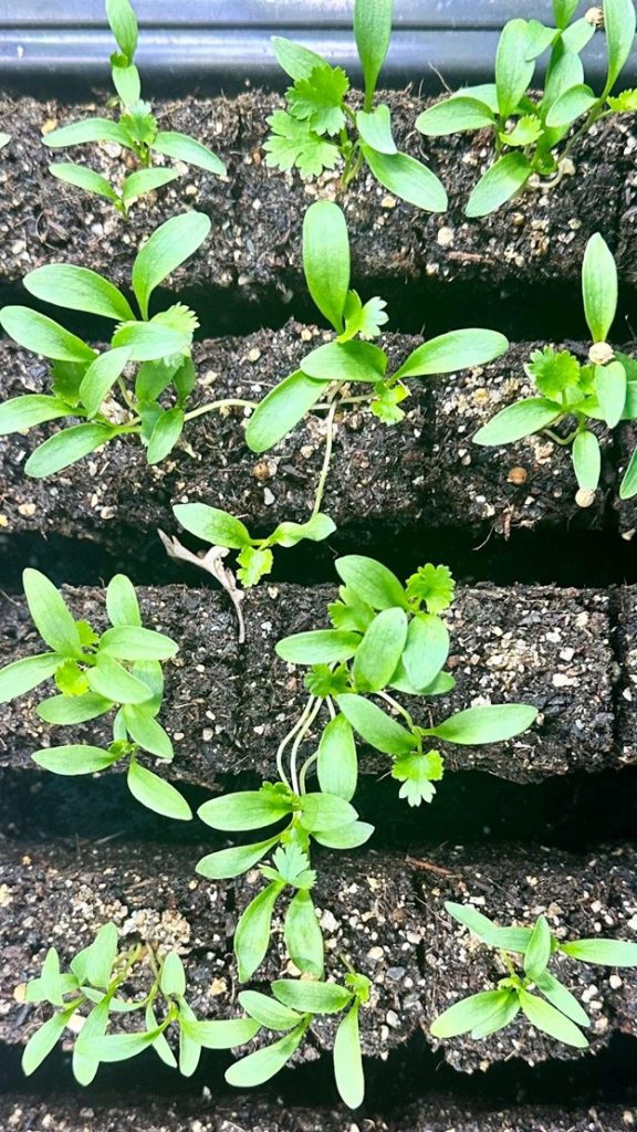 One of the ways I find renewal is in the quiet, tactile task of starting seeds – for myself, and for clients. I choose plants that I need alongside plants that bring me joy – think calendulas, California sungold tomatoes, herbs, and some zinnias. Using soil blocks for seeding is like making mud-pies, and planning for my seedlings’ care engages my mind in a productive and hopeful way. This practice can provide amazing plants for our own use and help us authentically share this knowledge with our clients. As author and podcaster Jennifer Jewell notes “Seed is everything. It is our food…our environment. It is our cultural symbol of hope and regeneration.”