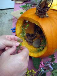 An example of how these goals are met in a fairy gardening activity are summarized below in the Pumpkin Fairy Home Activity which took place in October, 2009, and occurred both in the greenhouse and outside in the gardens (see photo).